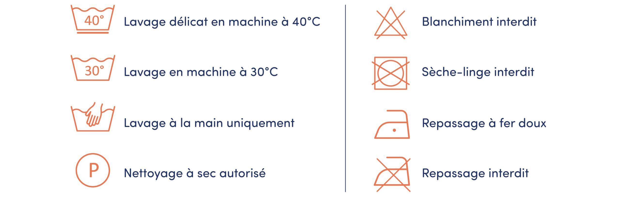 Les fibres textiles sont soumises à une série de tests de lavage, séchage et repassage afin que les fabricants puissent indiquer les conseils d'entretien sur l'étiquette. Ainsi, vous pouvez retrouver ces instructions sous formes de pictogrammes, qui peuvent parfois être assez mystérieux. Voici ceux que vous rencontrerez le plus souvent sur vos étiquettes de pelotes de laine :