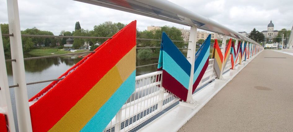 • Du tricot haut en couleurs pour décorer la ville de Nort-sur-Erdre en Loire-Atlantique : telle est l’idée derrière le projet de tricot urbain portée par la Résidence du Bois fleuri et les services de la Ville tels que la médiathèque, le CCAS et l’Animation jeunesse. Ils ont organisé, en 2022, une collecte de pelotes de laine, carrés colorés tricotés, et aiguilles, pour embellir le plan d’eau de la ville.