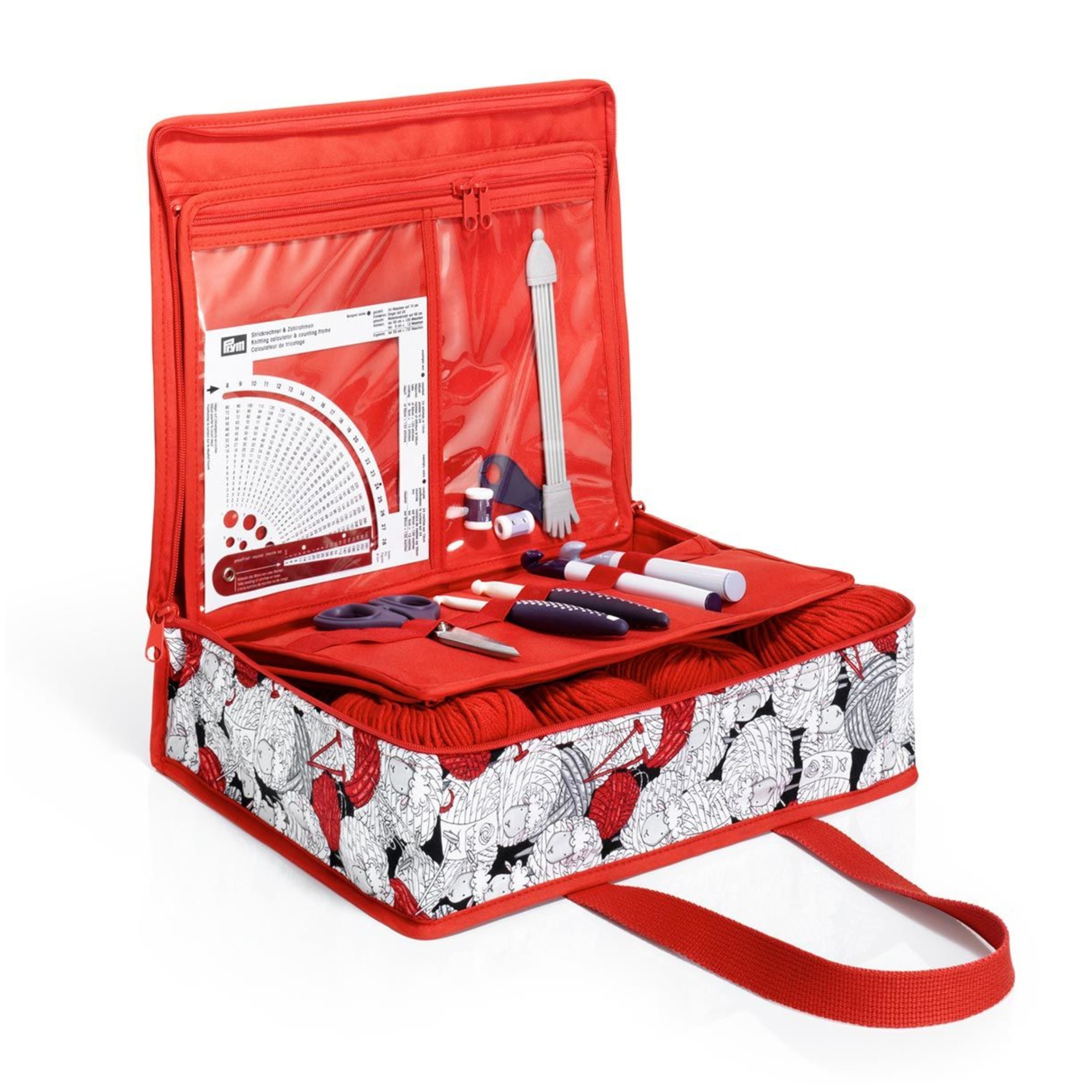 Let yourself be seduced by this large all-in-one Merino multi-pocket storage bag from Prym ! This bag is made from white fabric with a sheep and wool ball print, complemented by red details. It's ideal for storing and transporting your knitting or crochet materials and projects in progress. The bag has 12 tabs and 8 transparent inside pockets to give you plenty of storage options, as well as 2 sturdy handles for comfortable carrying. Do not wash the bag in the washing machine, clean stains only if necessary.