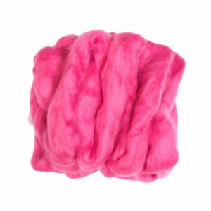 Thick carded wool roving, 23-24 microns, for knitting either with your arms or with size 45 needles, or for use in felting. This thick roving yarn is widely used for making throws and interior decorations. Felt craft specialists also appreciate it for its wide range of colours.