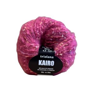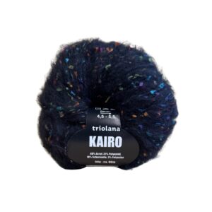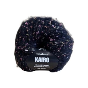 Triolana's KAIRO ball, available only in bags of 10 balls, features a lightly sequined fantasy yarn. This yarn is characterized above all by its