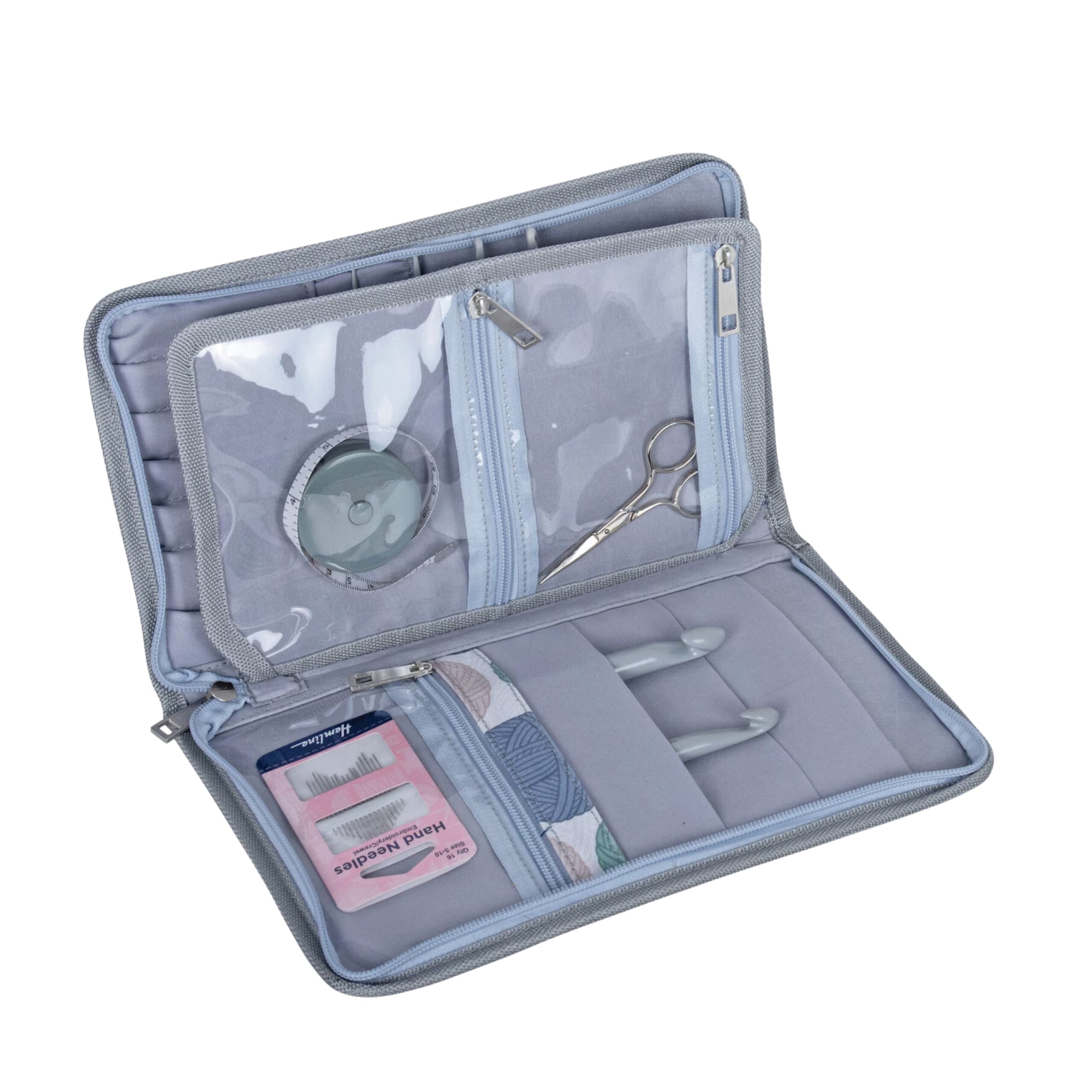 Laissez-vous séduire par cet étui pour aiguilles interchangeables ou crochets, aussi joli que pratique, de la marque Hobby Gift ! L’étui rigide à fermeture éclair est recouvert de tissu 100% Coton avec un imprimé pelotes de laine. À l’intérieur de l’étui de rangement, vous trouverez des boucles élastiques pour garder les pointes d’aiguilles interchangeables ou crochets en place et bien rangés. L’étui est également doté de petites poches zippées à l’intérieur pour glisser tous les petits accessoires nécessaires au tricot ou au crochet. Ne pas passer l’étui en machine, nettoyer les taches uniquement si besoin. Les crochets et accessoires présents sur les photos de présentation du produit ne sont pas inclus avec l’étui.