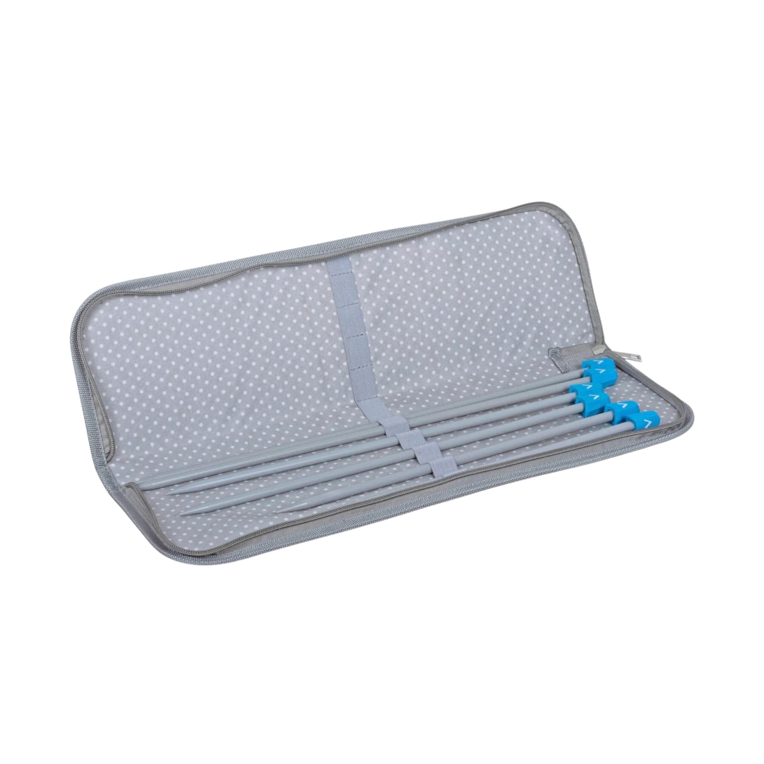 Laissez-vous séduire par cet étui pour aiguilles à tricoter, aussi joli que pratique, de la marque Hobby Gift ! L’étui rigide à fermeture éclair est recouvert d’un tissu texturé gris 100% Coton avec 3 motifs pelotes brodés dessus. L'intérieur gris à pois blancs de l’étui de rangement est doté de boucles élastiques pour garder les aiguilles à tricoter en place et bien rangées. Mettre en ordre et transporter vos aiguilles à tricoter n’aura jamais été aussi simple et rapide ! Ne pas passer l’étui en machine, nettoyer les taches uniquement si besoin. Les aiguilles présentes sur la photo de présentation du produit ne sont pas incluses avec l’étui.