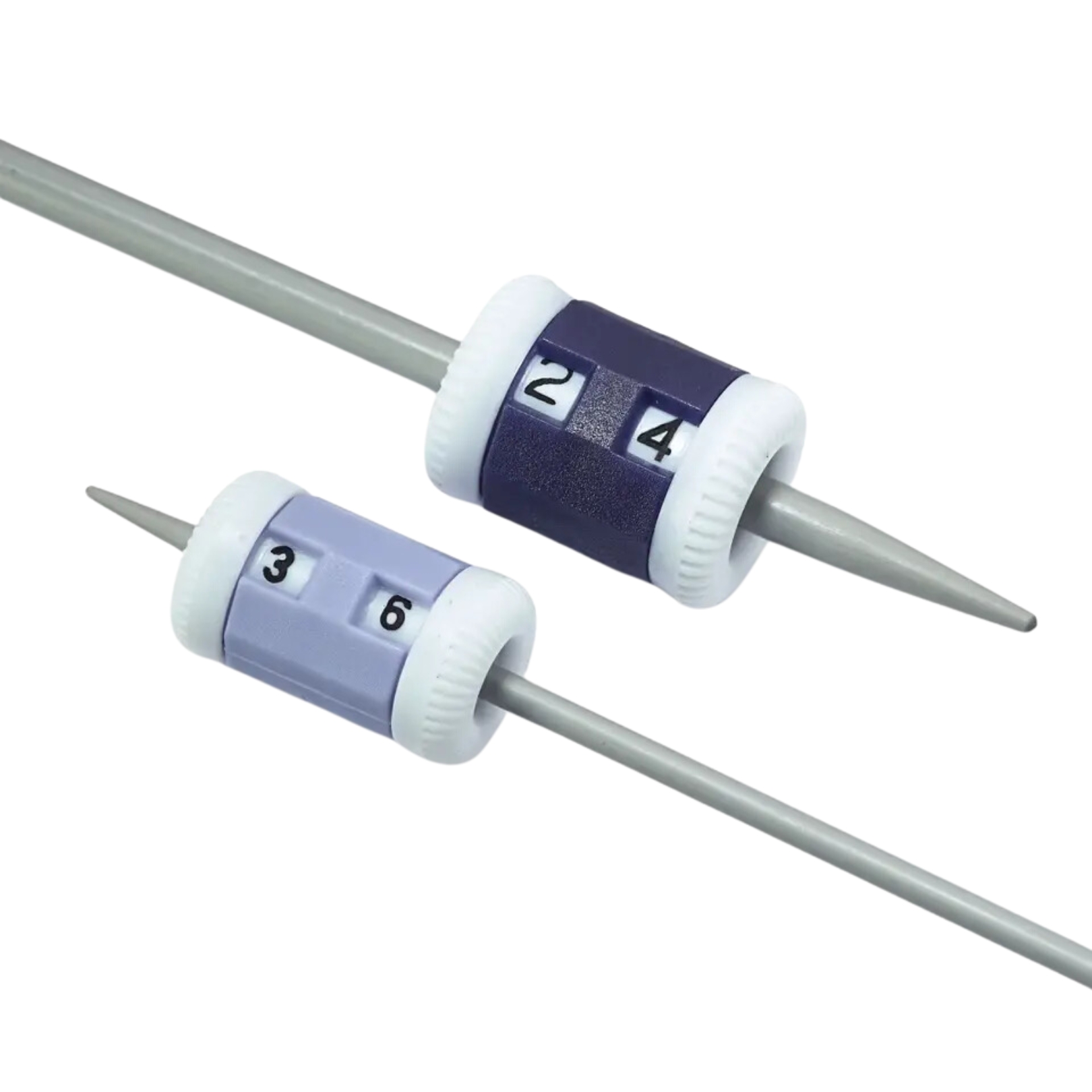 Ces compte-rangs sont disponibles en lot de 2. Dans le paquet, vous trouverez un petit compte-rangs pour une épaisseur d’aiguille de 2,5 à 4,0 mm et un grand compte-rangs pour une épaisseur d’aiguille de 4,5 à 7,0 mm.