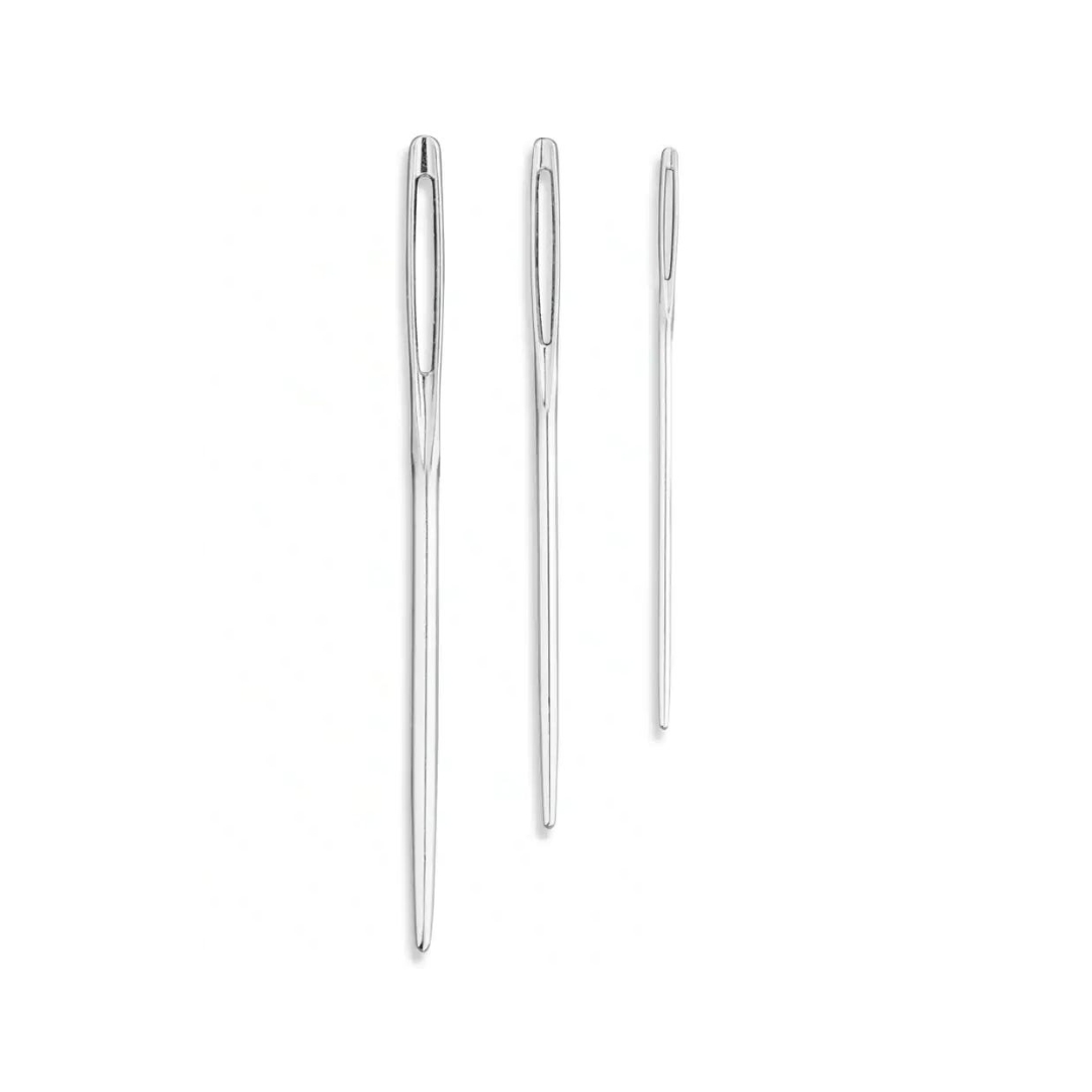 Ce lot de 3 aiguilles à laine à bout rond comprend une grande aiguille de 70 x 2,4 mm, une moyenne aiguille de 60 x 1,9 mm et une petite aiguille de 50 x 1,2 mm.