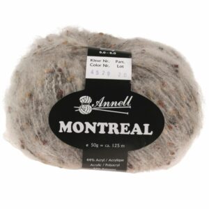 Fil à tricoter et à crocheter super doux, gonflant et léger avec des petits confettis qui donnent de l'éclat à vos ouvrages. La laine MONTREAL de chez Annell est très avantageuse, 8 pelotes suffisent à la réalisation d'un pull taille 40 - 42.