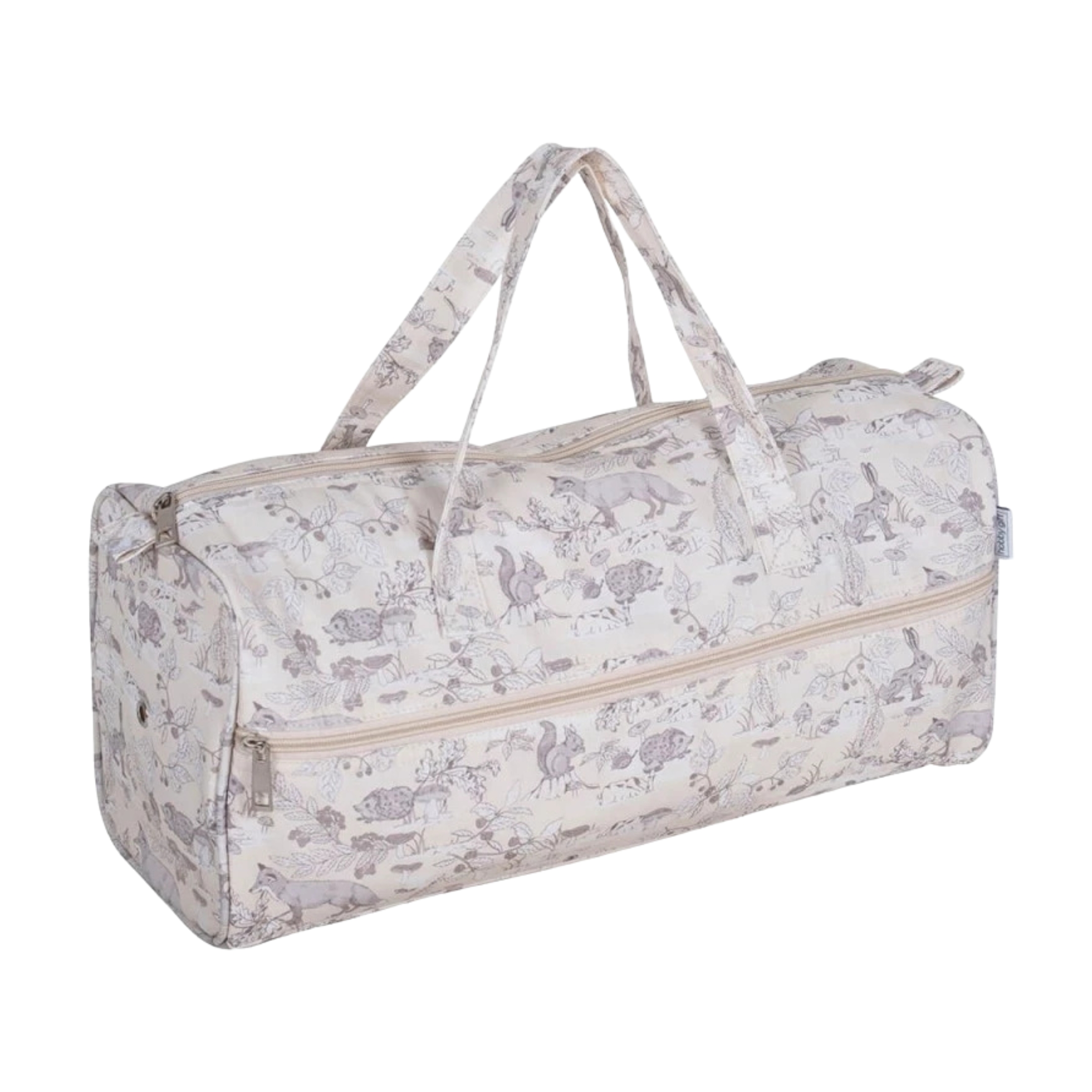 Laissez-vous séduire par ce grand sac à ouvrage, aussi joli que pratique, de la marque Hobby Gift ! Ce sac à fermeture zippée et à double poignée est fabriqué avec un tissu imperméable en Coton enduit de PVC mat avec un imprimé animaux de la forêt.