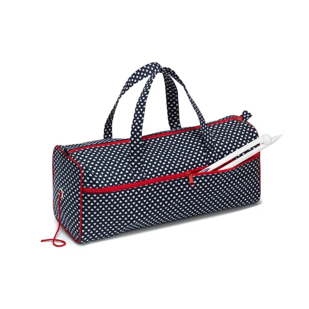 Laissez-vous séduire par ce sac à ouvrage Lovely de chez Prym, aussi pratique qu’élégant, parfait pour ranger et transporter votre matériel de tricot ou de crochet ! Avec son motif charmant de petits cœurs blancs sur un fond rouge et bleu foncé, il apportera une touche douce et romantique à vos projets créatifs.