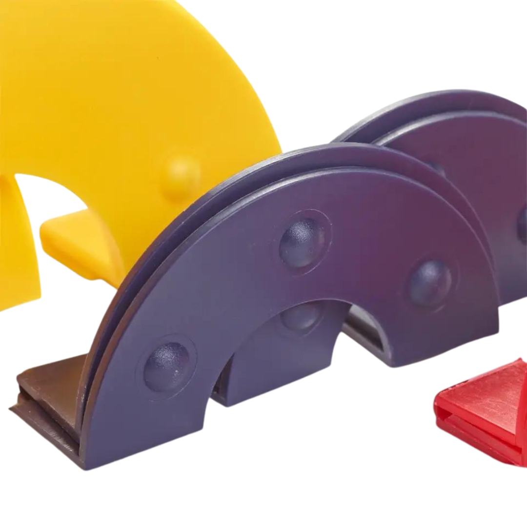 Chaque support possède une couleur différente vous permettant de facilement l’identifier. Ces supports se présentent sous forme d’anneaux en plastique solide composé de 4 parties fusionnant entre elles afin d’obtenir des demi-anneaux pour enrouler le fil de laine et créer vos pompons.