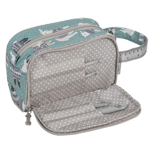 Laissez-vous séduire par cette trousse pour crochets et autres accessoires de tricot, aussi jolie que pratique, de la marque Hobby Gift ! La trousse de rangement zippée est fabriqué en tissu 100% Coton avec un imprimé moutons.