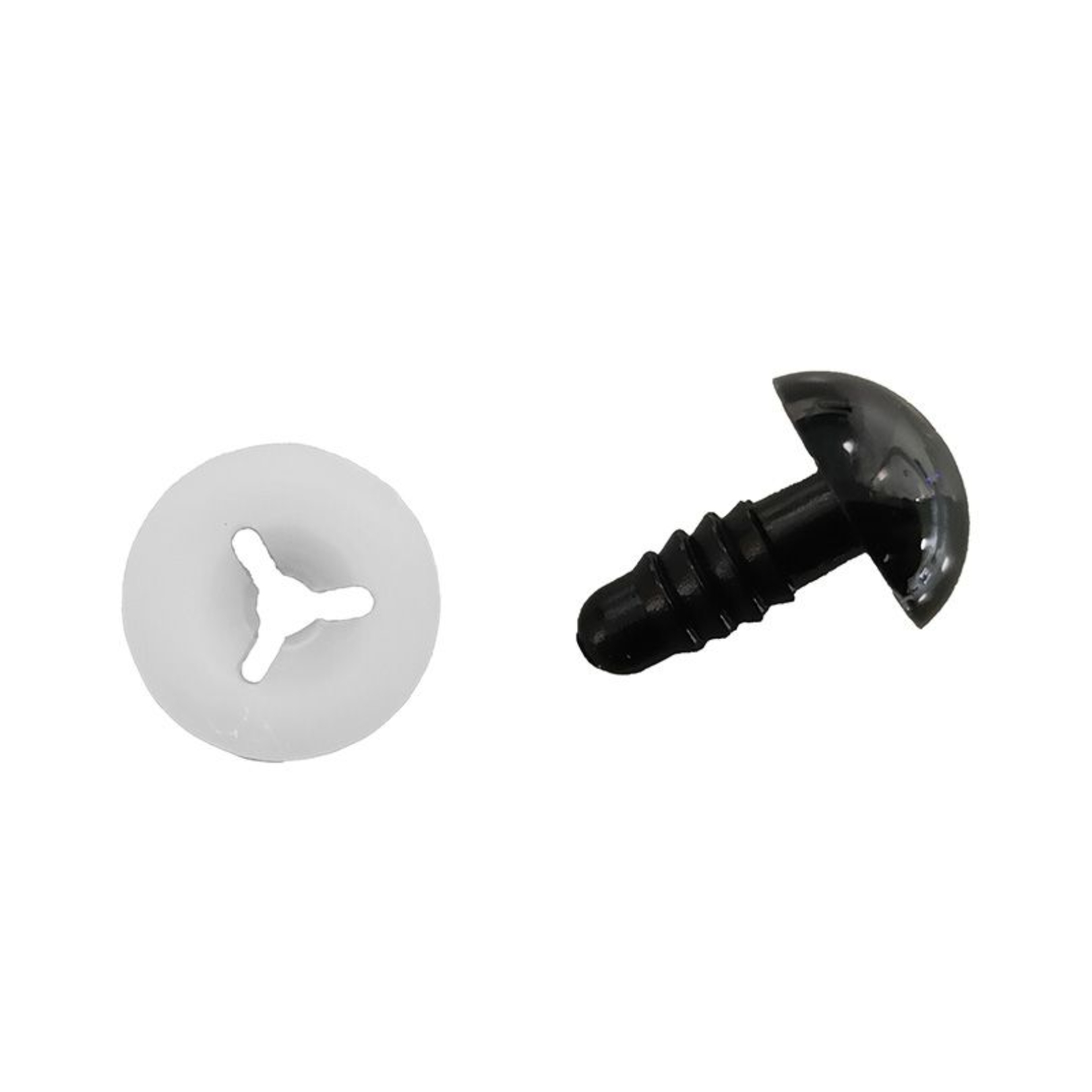 Ces yeux de sécurité noirs sont vendus par paire, en lot de 2 yeux, et sont disponibles en 3 diamètres : 8 mm, 10 mm et 12 mm.